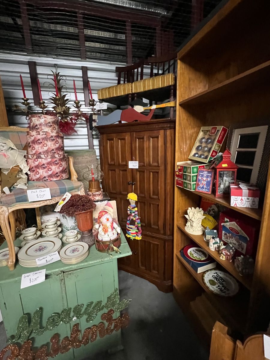 Lots of stuff! Christmas decorations, furniture, pictures, beds, chest, lamps, lots of small items.