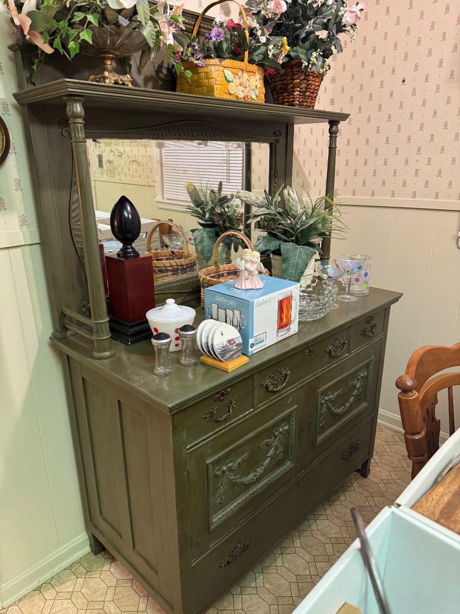 What a clean and organized home to shop for treasures! There are some nice, well-cared for furniture pieces, couple of rugs, framed art, handmade quilts, lamps, vintage baby clothes, dishes, lots of vintage electronics, clocks, lamps, ladders, golf clubs, shop items and storage units....keep watching as we'll continue to add photos!