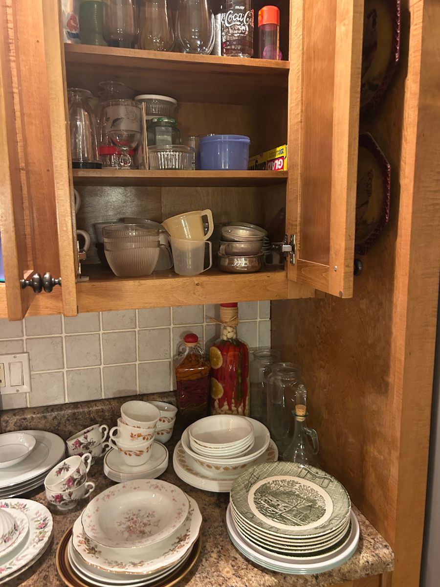 Glassware, China, antique pottery bowls, kerosene lamps, lamps, furniture, bedroom suites, large safe, kitchen table, all types of rooster decor, dining tables with chairs, quilts, blankets, end tables, coffee table,, lots of odd wooden chairs, vintage trunks, china cabinet, display case, rocking chairs, upright freezer, vintage tools, vintage tractors, 3 older lawnmowers, old Yamaha golf cart, grain silo to dig through, puzzles galore, metal owning, lumber, scrap metal, outdoor concrete furniture, lots of Christmas decor, and so much more to dig through.