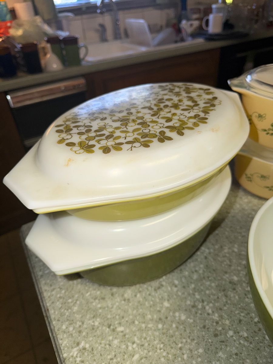Lots of gorgeous glassware in just about every color! Pyrex, corning ware, tons and tons of jewelry, there is more in the sale than you could ever imagine!