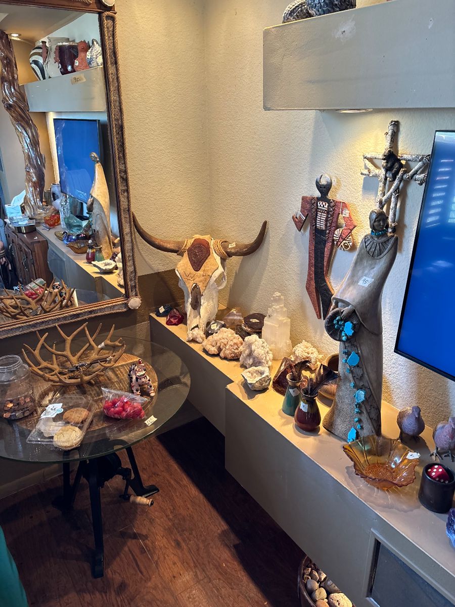 moose, deer, antlers, unique wood lamp, antiques, collectables, cow skull heads, southwestern arts, books, yard art and plants, copper collection, glassware, dishes ,ruby dishes, czech dishes, fridigaire fridge (1 years old) and much more!