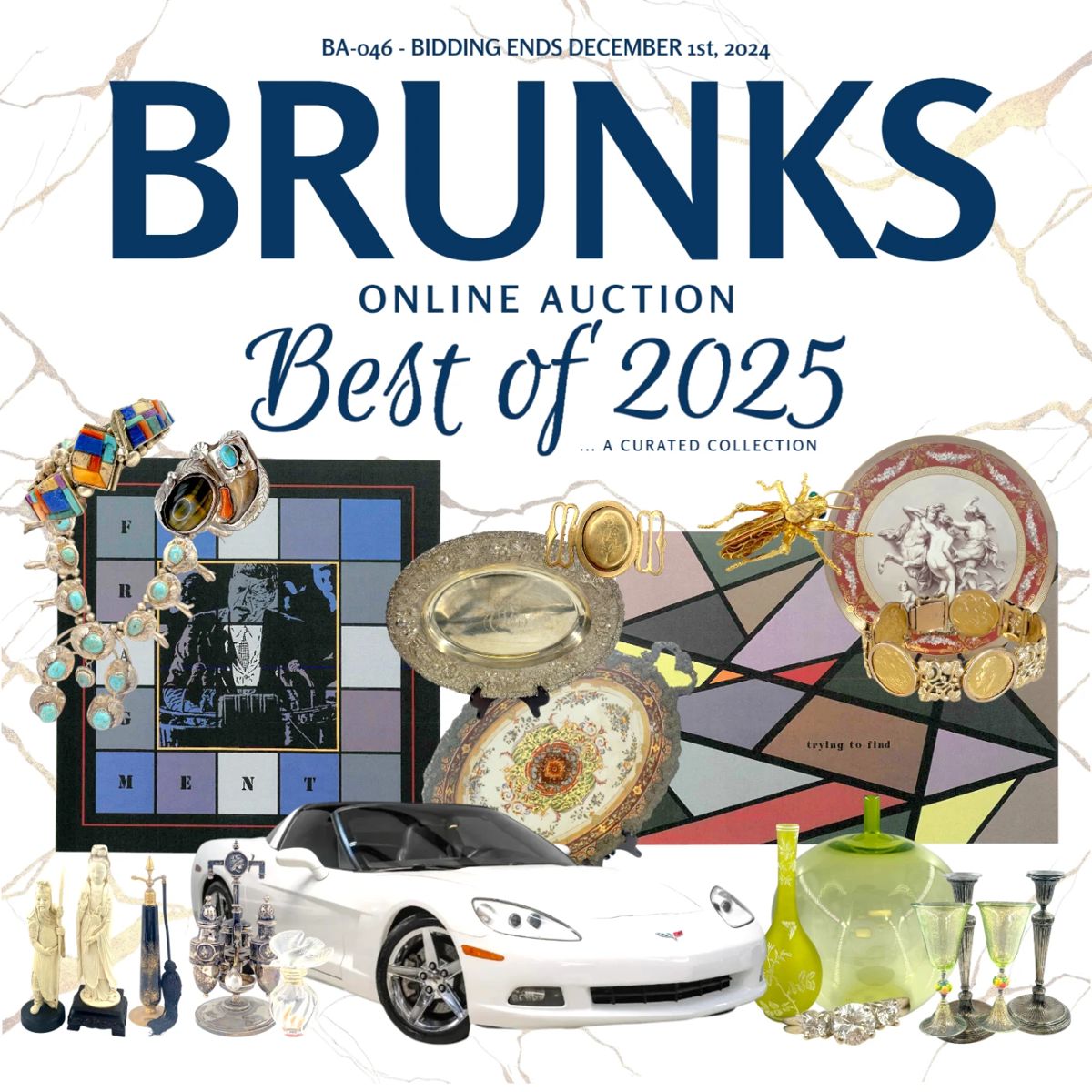 BA046 - BRUNK'S BEST OF 2025 ... A Curated Collection: This 600+ lot auction includes...a 2012 Chevrolet Corvette; followed by James Josephson’s conceptual art series (“The Story of the Kennedys,” “Jan van Eyck Was Here,” "Winter Scenes" "Terra Incognita" “All Eight of Me,” and standalones) with museum-provenance boards and self-published books; over 100 vintage perfume bottles from Lalique, DeVilbiss, Czech Bohemian, Lucien Lelong, and Jean-Paul Gaultier; fine jewelry in 14K/18K gold by Tiffany & Co., Cartier, and Native artists (turquoise, diamond, ruby); plus sterling silver flatware, Navajo cuffs; and MUCH MUCH MORE TO COME!! This auction will begin closing MONDAY,...