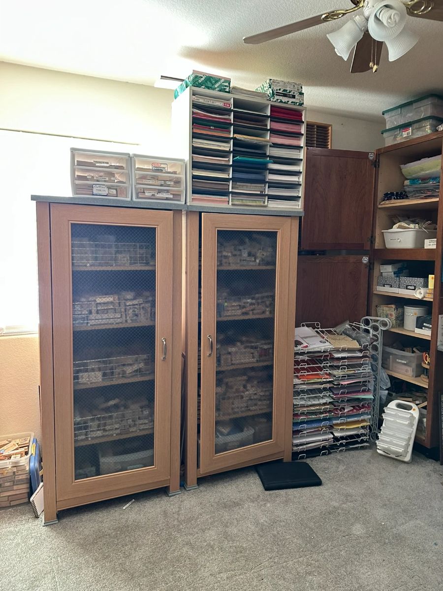 The entire garage and guest room is packed with stamps for cards and scrapbooking