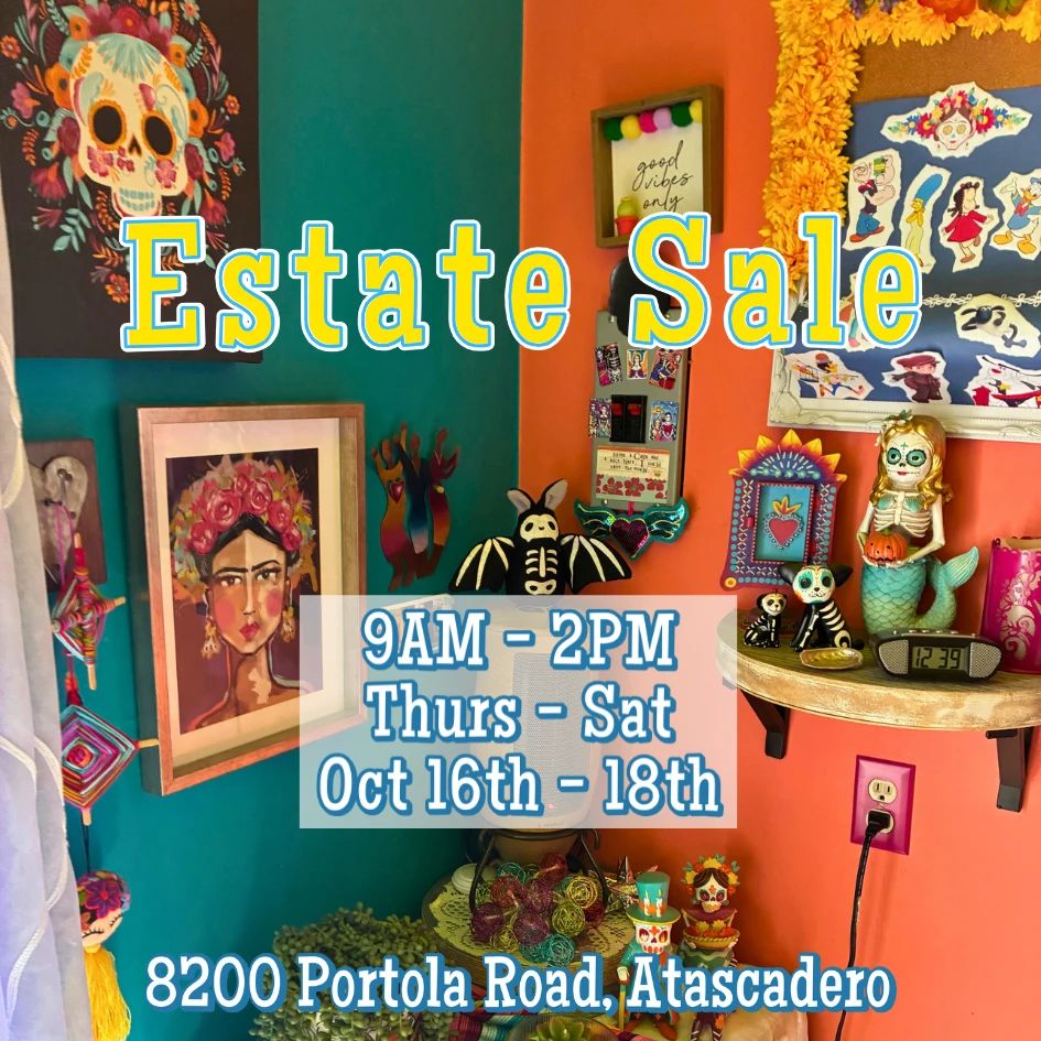 🌻 Estate Sale — Atascadero 🌻 This estate is full of vibrant personality, colorful folk art, classic furniture, garden decor, collectibles, and more. If you love eclectic style and unique pieces, this is a sale you won’t want to miss! 🗓 Thursday–Saturday, Oct 16–18 🕘 9AM – 2PM 📍 8200 Portola Road, Atascadero 🪴 Garden metal art & decor 🪞 Solid wood furniture 🍽 Kitchenware, glassware & cookware 🧰 Tools & garage treasures 🎨 Art, collectibles, vintage & more! ✨ Cash & cards accepted | No early birds, please.