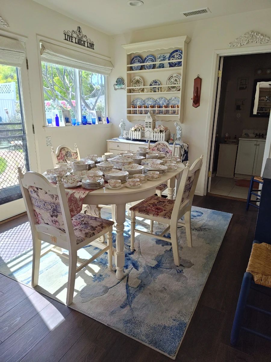 LARGE BEAUTIFUL SET OF HAVILAND LIMOGES CHINA. SPODE CHINA. LALIQUE GLASS. LOTS OF COBALT GLASS. NICE CRYSTAL STEMWARE. AMERICAN BRILLIANT GLASS. TEACUP AND SAUCER COLLECTION. DOLLS. BOOKS. YEARBOOKS. ART. WALL ART. COSTUME JEWELRY. VINTAGE CLOTHES. VINTAGE HATS. SILVERPLATE. CHRISTMAS. OTHER HOLIDAYS. GARAGE AND LOADS MORE.