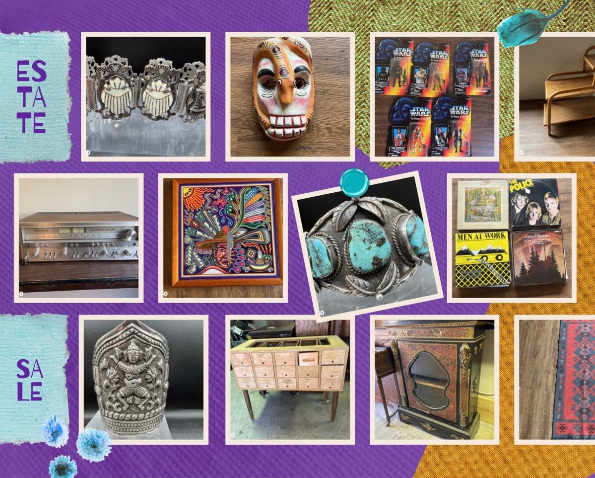 ESTATE SALE IN CAMBRIA, CA BIDDING NOW! Thu, January 29 - Sat, February 7 Location: Cambria, CA # of Items: 212 Estate Sale Company in San Luis Obispo County Estate 360® Estate Sales & Downsizing Estate Sale in Cambria, CA Estate Sale Features: Quality Home Furnishings, Antiques & Collectibles, Sterling Silver & Turquoise Native American Cuff Bracelet & Belt Buckle, Honda Gold Wing Motorcycle, Vintage Record Albums, Jacquie Marie Vaux Signed & Numbered Lithograph, Mid Century 3-Tier Rattan Arch Side Table, Vintage Kazak Hand Knotted Area Rug, Mid Century Resin Top Accent Table, Woven Turkish Style Rug, Vintage Clothing, Vintage...
