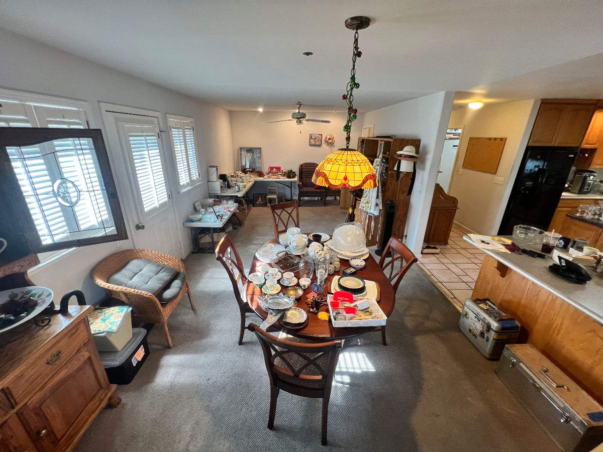House full of goodies! Awesome tool room. Lots of glassware & dishes, furniture, building materials, a scooter & much more!