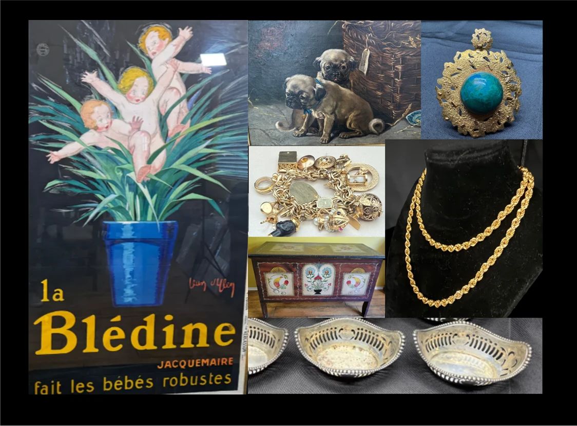 Welcome Home to CTBids! We put together an excellent selection of items for you! Start exploring and discover the deals for yourself! Bidding on ALL items starts at $1! Immerse yourself in a cultural collection where art and craftsmanship meet. A captivating blend of European fine art, French advertising posters, pug-themed oil paintings, and museum-quality antiques. Highlights include Lucien Lefèvre’s 1894 “Cirage Jacquot & Cie” lithograph, Charles Loupot’s “La Blédine Jacquemaire,” and several 19th-century English and European School pug portraits. The jewelry selection gleams with 14K and 18K gold pieces—including an extraordinary 125 gram charm bracelet and a 1921 Mexican...