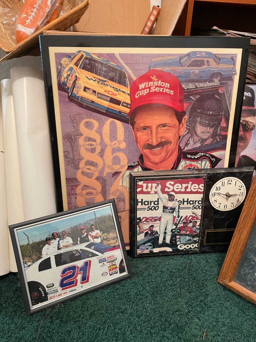 Nascar, Vintage and new New racing T-shirts in bags Vintage racing magazines Nascar Cars, posters, more cars and swag Hot wheels, magazines and more Collectors cars, toys, cards 49ers football, baseball and more Artwork- Kincaid's and more Antique barber Pole, Barber items Underwood typewriter Boyds bears in boxes Designer Holiday decor (TONS OF STUFF) Hummels, china,Stoneware, cups and saucers Crystal, stemware Thimble collection Brighton purses and luggage Mens Pendleton shirts Designer women and men's clothes mostly new with tags Cloud pottery Beanie babies Sewing machine Cameras & Lenses Books, Records, CD's Legos and train set Garden art Costume jewelry, belt...