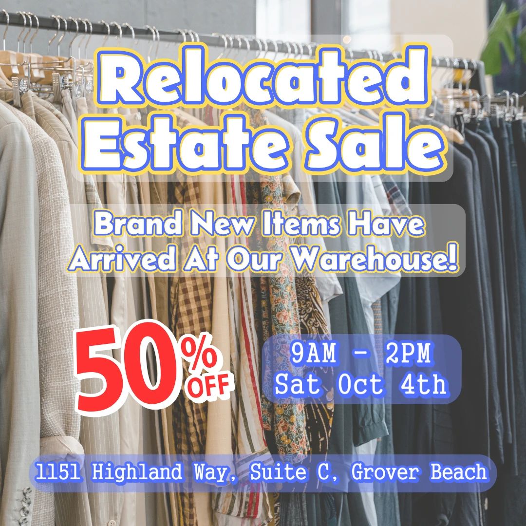 Our Grover Beach warehouse is overflowing with fresh arrivals this week and it's all half off for Saturday only! The racks are packed and the shelves are full! ⏰ 9 AM – 2 PM 📆 Sat, Oct 4th 📍 1151 Highland Way, Suite C, Grover Beach Highlights include: Tons of clothing, shoes, purses, and accessories in excellent condition, Disney plush toys, mystery capsules, and Funko Pop! figures, Beauty and haircare products, Small electronics, fans, headphones, and diffusers, Kitchenware, quilts, and decorative home goods, Everything is priced to moved - come score some great deals!