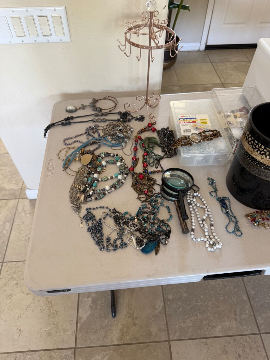 Jewelry, Silverware, golf clubs, crystal (Waterford)and more, China, collectibles , Asian art, full kitchen, pots and pans, lots of bar items, women’s clothing and shoes lots of women’s belts, furs, suitcases, fake plants, lots of pet supplies, doggy stroller, dog and cat crates, nic-nacks too much to list!!!!!!!!!!!