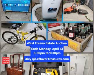 APRIL. 13- WEST FRESNO Estate Auction. 180 Lots. Ends MONDAY 630p to 9p. Pick up TUE. WED. THURS.