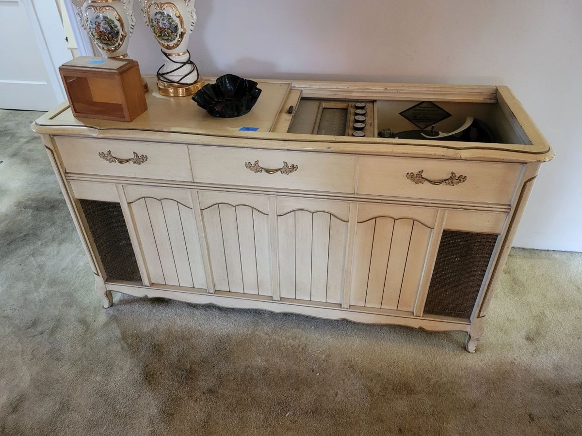 Highlights: vintage upholstered chairs, lamps, stereo, patio furniture, bar, clothing, and more. Toys, marx train, wind up dancer, and more. Costume jewelry, Christmas, sewing, fishing, tools, yard art, pots and more.