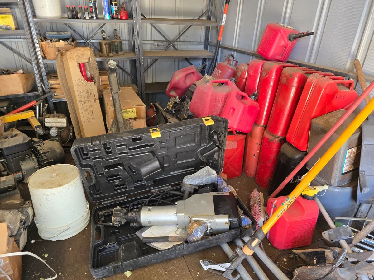 Tools tools and lots of tools Power tools Hand tools Grinders Sanders Air compressor tools Nail guns Boxes of nails Boxes of staples Electrical supplies Bulbs / lamps Sander belts and paper Lots of Circular saw blades Standing and rolling Jack's Auto parts Heaters Lots of chemicals Lots of screws Clamps big, regular, and small Pipe cutters big, regular, and small Pressure washer Cement mixer Standing work horses Tools boxes set and singles Disability walker and rider Safes Smoke n grill small grill Grease guns Lots of cart wheels Lots of gas tanks Metal shelves Metal garden small tables Ladders...