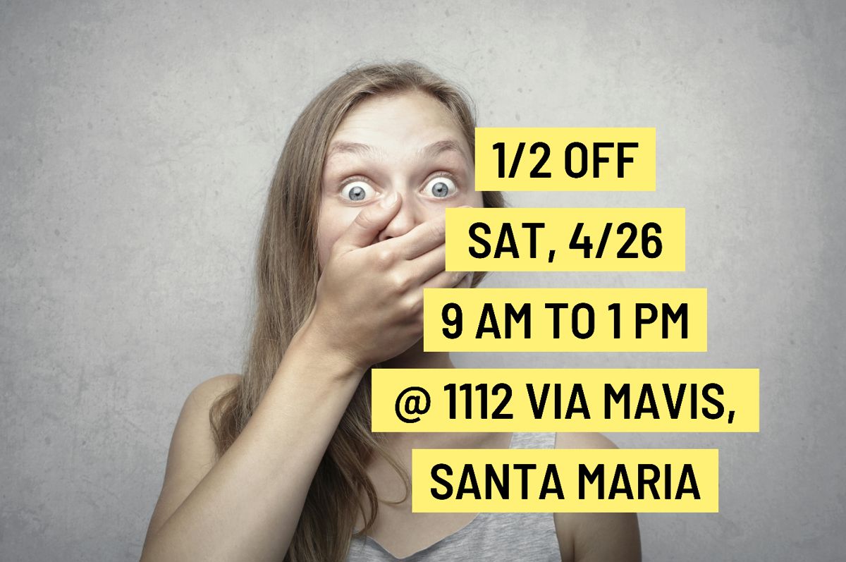 1/2 off ALL @ Estate Sale Orcutt on Fri 4/25 9 to 1; 1/2 off Sat 9 to 1!