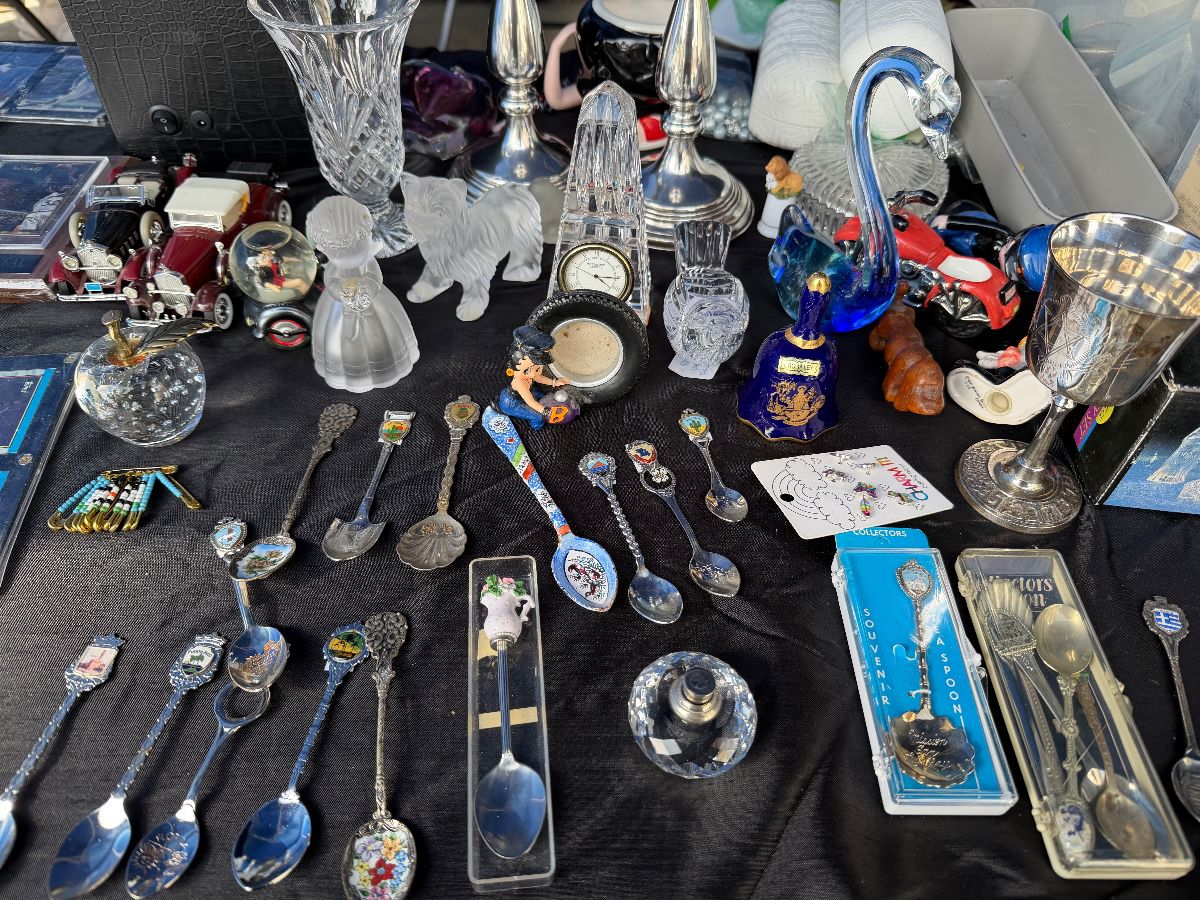 Has a bit a of everything from collectibles to home goods and essentials . There porcelain figures kitchen utensils. Bags, clothes , shoes , tools and so much more . Hundreds of Beanie babies