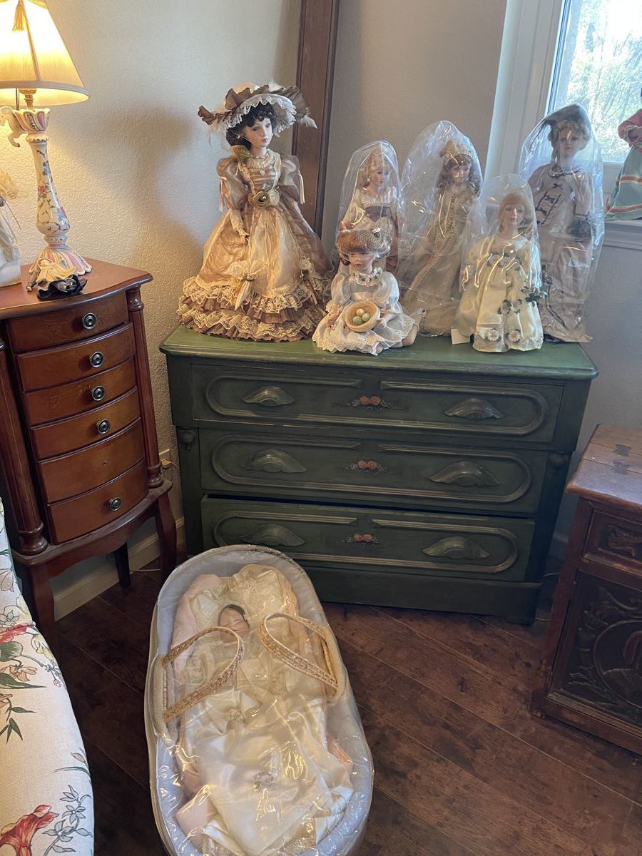 Hello Folks, This is a great little estate sale featuring an eclectic group of antiques and collectibles for the discerning buyer. Here is a partial listing of what we have. Keep checking back because we are still opening boxes. Antique Persian Rugs Bronze horse statues Antique Bedroom Set Antique Dining 5 leg table Singer Feather weight 221 sewing machine Antique books Art Christmas Decorations Clothing Lamps Wing Back chair Slip covered couch dishes Antique Desk Antique Dressing Table and Chair Trunks Antique Dolls Bryer Horses Antique Crocks Collectible Vintage Horse Statues, banks Book Shelfs Dog Crates
