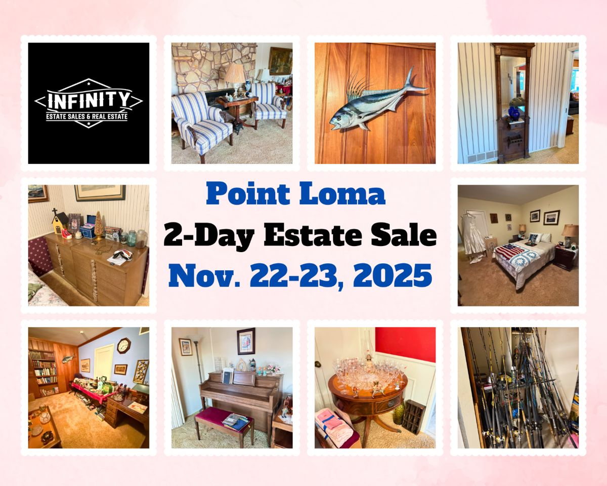 This large Point Loma home has a nice variety of items, including home decor, furniture, clothing, books, jewelry, lots of deep-sea fishing poles, electronics, kitchen items and more! We will continue to update this listing as we prepare the sale.