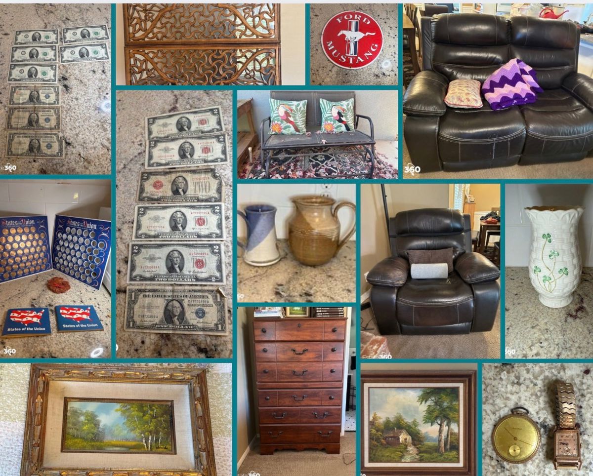 ESTATE SALE IN SELMA, CA BIDDING NOW! Thu, November 27 - Fri, December 5 Location: Selma, CA # of Items: 149 Estate Sale Company in Fresno County Estate 360® Estate Sales & Downsizing Estate Sale in Selma, Ca Estate Sale Features: Quality Home Furnishings, Sterling Silver Spoons, Vintage Blue Seal Silver Certificates, U.S Two Dollar Red Seal Currency Notes, Vintage Glassware, States of the Union Bronze Collectors Coins Sets, Sunjoe 2030 Power Washer, Barcalounger Resin Wicker Patio Armchairs, Quilts, Patio Furniture & Garden Decor, Antique Wagon Wheels, Ford Mustang Ande Rooney Enameled Porcelain Sign, Metlox Poppy Trail Ceramic Lidded Rooster...
