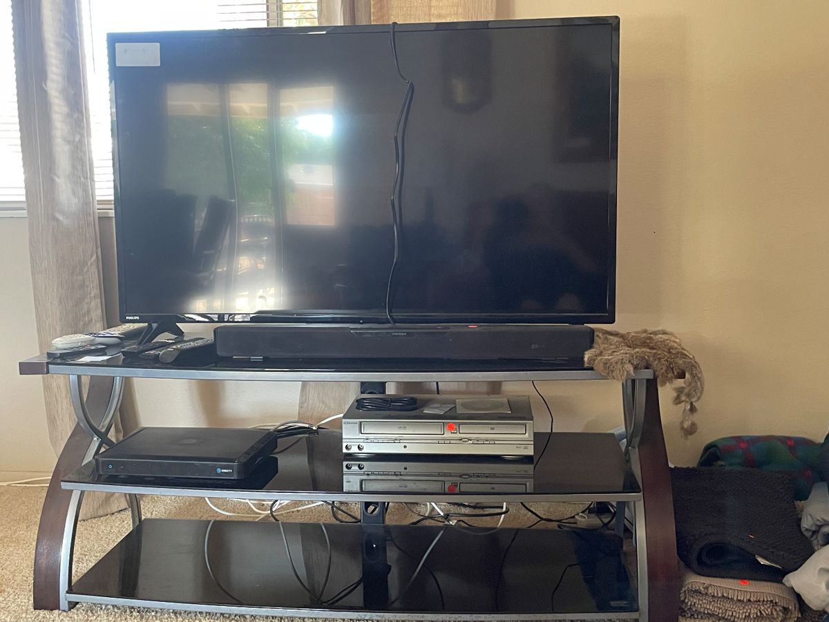 Big comfy couch, rocker/ recliner love seat, nice kitchen table and chairs. Double bed and dressers, also single bed with under drawers. New mattresses. Big screen tv and sound bar. Indoor and outdoor Christmas decorations.