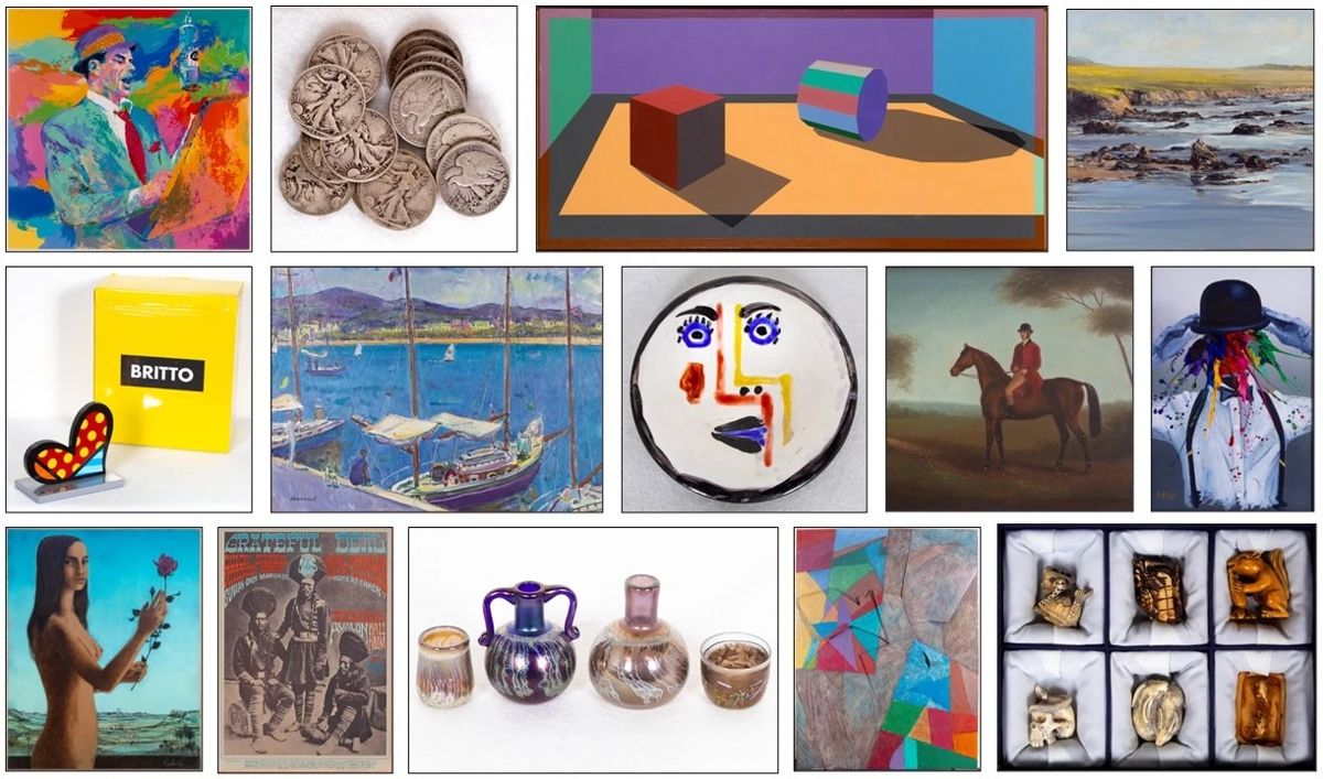 Fine Art, Paintings, Prints, Art Glass & Ceramics, Vintage Rock n Roll posters, Netsukes, Silver Coin Collections & more. Most sold without reserve.