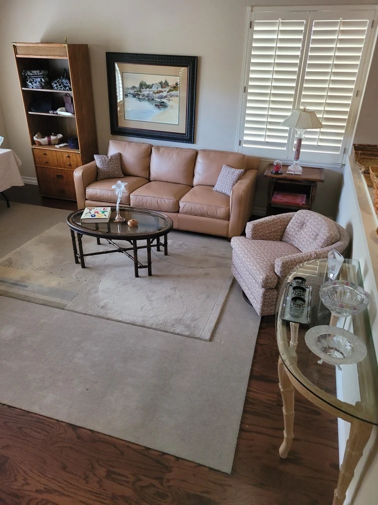 This home in Thousand Oaks is filled with practical items to bring magic into your life... Leather sofa Coffee table Rugs Vintage swivel chair Decorative tables Shelf Home decor Lamps Accent chairs Coach bags Drexel dining table 4 chairs leaves and pads Wicker chairs Farmhouse hutch Glass top table with chairs Kitchen items Glassware and dishes Cow collection Pots and pans Breadmaker Artwork Woman's clothing Shoes and purses Dresser Nightstands Headboard Twin bed sets Bedding and linens Books Sleeper sofa Entertainment electronics Printer Refrigerator Office supplies Ladder and tools Patio and garden Garage items Potted plants Rare Annie Lennox Diva/Grammy...