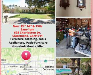 Blow out Jurupa, tons of tools, furniture, biker jackets, clothes, precious moments, trailers, rocks