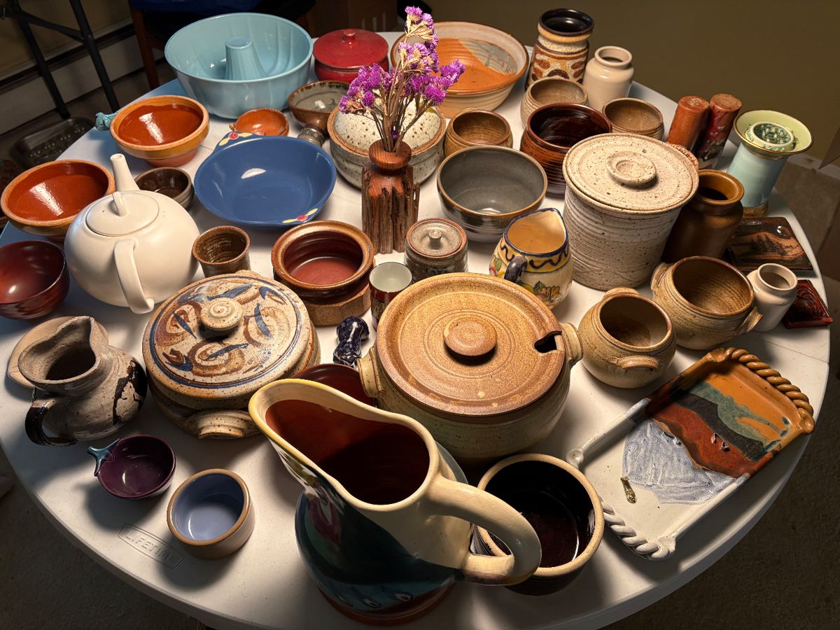 Books on birds, Colorado, history, art, older cookbooks-many from Peppercorn, maps, records and tapes, vintage clothing, jewelry, watches, pottery, games, deer fencing, Pyrex baking dishes, wall art, desks, chairs, old dishes, collectibles, office supplies, sewing, and more to be discovered.