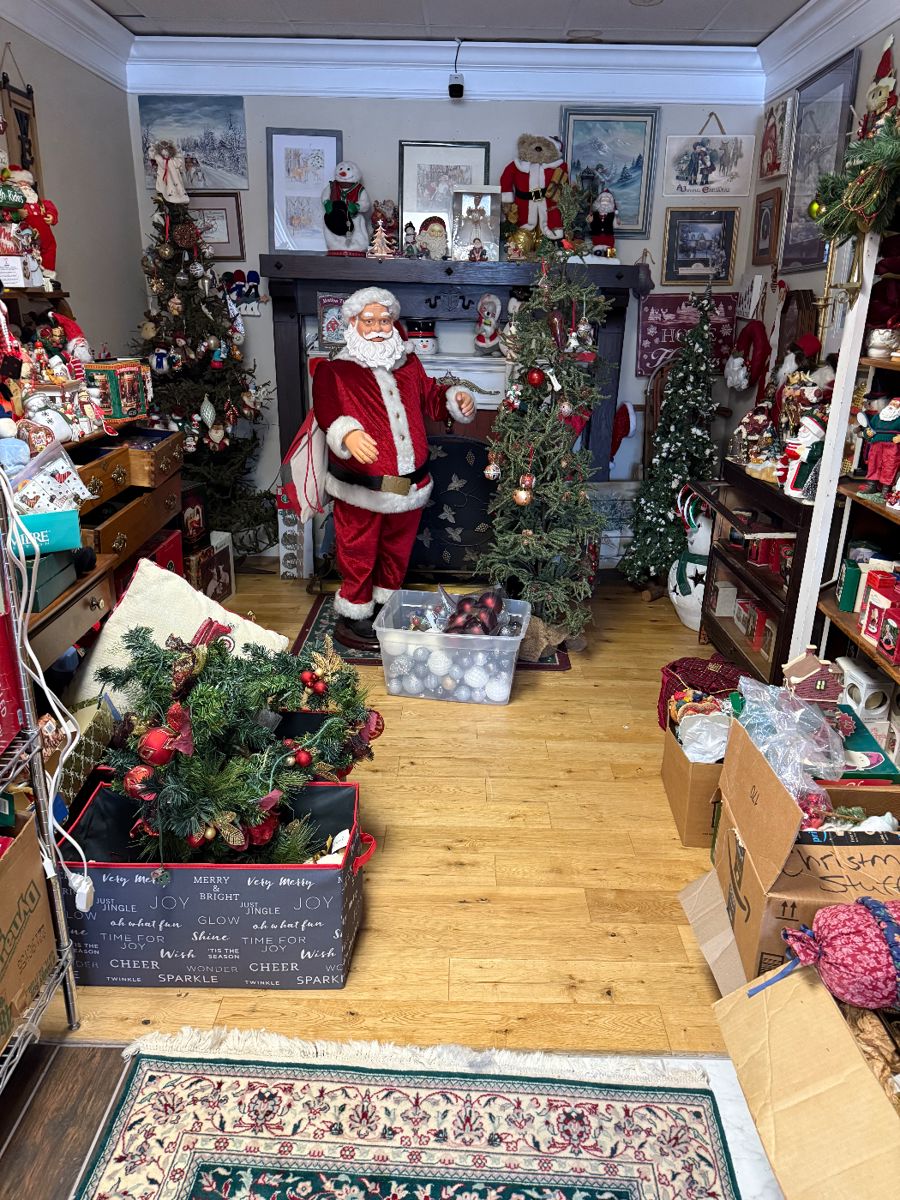 Fabulous Milford Estate Sale We have antiques and Collectables, mid-century modern (a pair of green patent leather chairs, coffee table and end tables set, lamps, even an electric fireplace), a huge selection of Christmas items (ornaments, figurines, even a few Christmas tree trees), a Peugeot bicycle, Dolls (Madam Alexander, some handmade dolls, and many others), many Mid Century wire tables even some wire rack record holders, artwork (paintings, lithographs, Prints), a wonderful stick wood coffee, jewelry, a collection of vintage ashtrays, records, a wonderful Italian tea cart, multiple dish sets (blue Willow, Franciscan Apple, and many others, multiple train sets,...