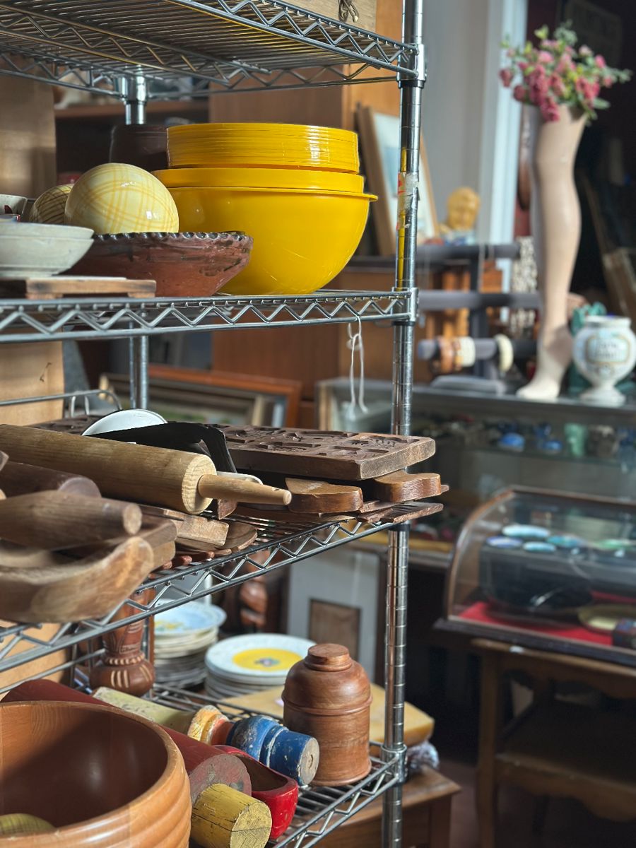 Well appointed Stamford estate brought over to our warehouse along with a massive pottery collection, Persian carpets, embroidered pillows, and textiles from India & Thailand. Mid-century white parsons dining tables, pine end tables.