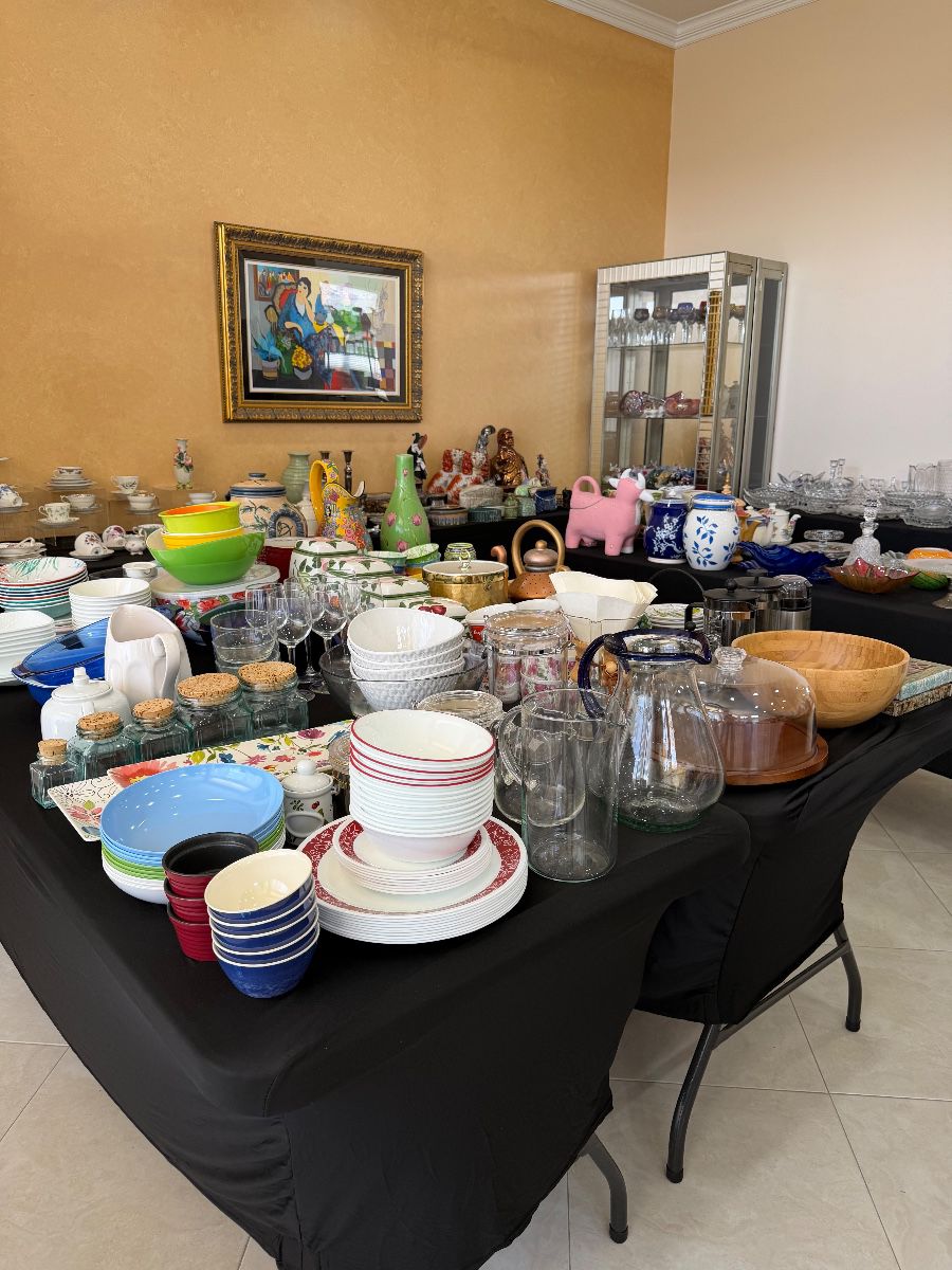 Furniture, jewelry, clothing, shoes, sleeper sofa, refrigerator, home decor, table and chairs, sofa, rocking chairs, end tables, entry tables, pottery, kitchen items, bedroom set, dresser, towels, sheets and so much more.