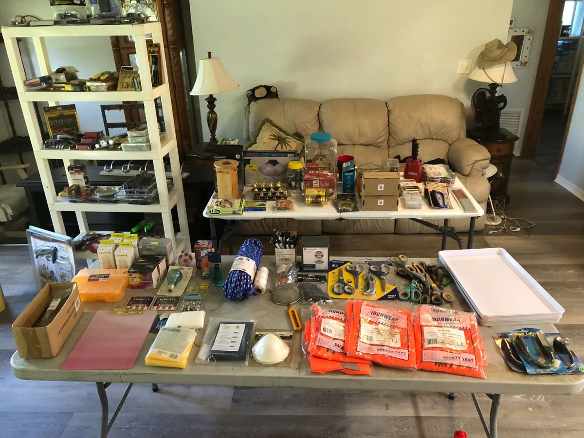 A lot of variety. knife collection, yard equipment, clothing, scrap metal, new-unopened tools, used tools, farm related equipment, misc household furniture. Bring trailer or hauling equipment if you expect to buy some large items such as; Barrels, bins, pallets, barb wire rolls, wood, lawn tools, furniture, etc.