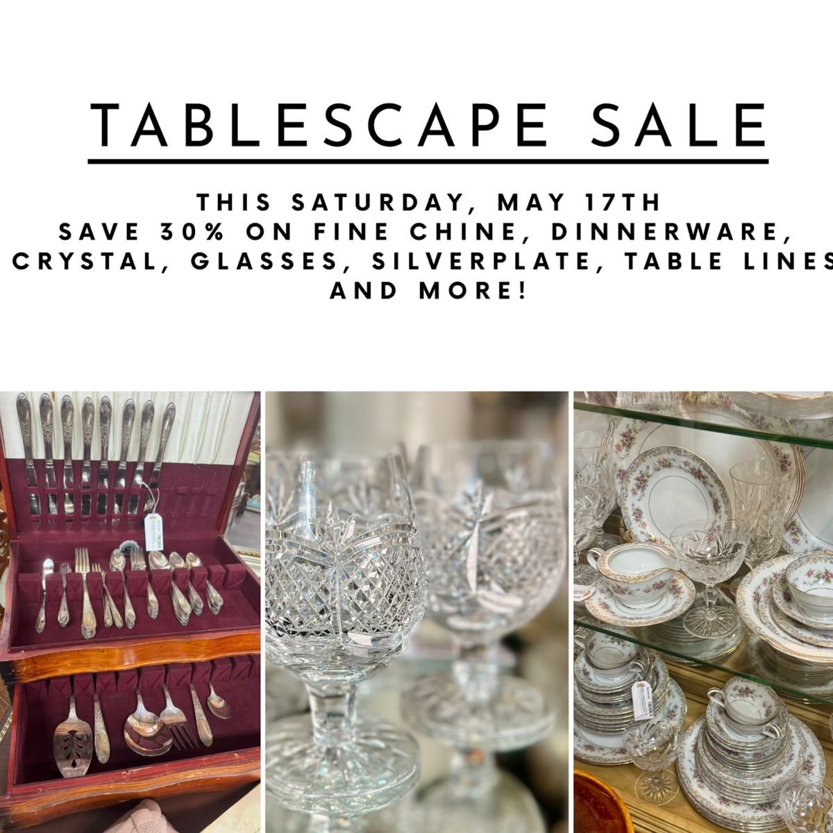 New estate inventory plus 30% off tablescapes! Open Wed/Sat