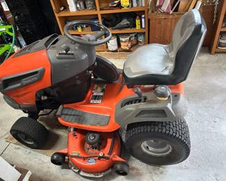 Trailer, gas riding lawn mower, tools, plants, fishing gear and more!