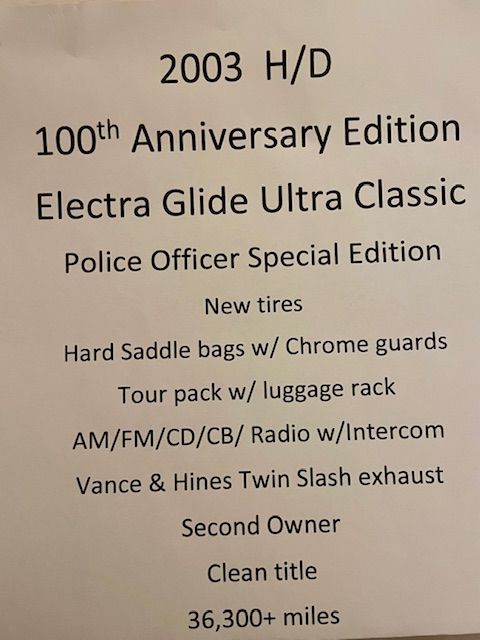 Broyhill dinning room table with 4 leaves - 8 chairs - 2 arm chairs - china cabinet, Broyhill bedroom set - King headboard - footboard - side boards, 2 night stands, dresser, armoire, 2 Broyhill burgundy leather chairs, entertainment center, 3 bar stools, lighted curio cabinet, rocking chair, lamps, vintage corner table, office furniture, TV's, stereo systems, Hot Wheels collection, vintage cameras, vintage children's books, National Geographic collection plants, pots, glider, swing, hammock & stand, craftsman riding mower & grass catcher, tools, table saw, router, ladders, gas grill, AND... 2003 Harley Davidson 100th Anniversary Edition Electra Glide Ultra Classic Police...