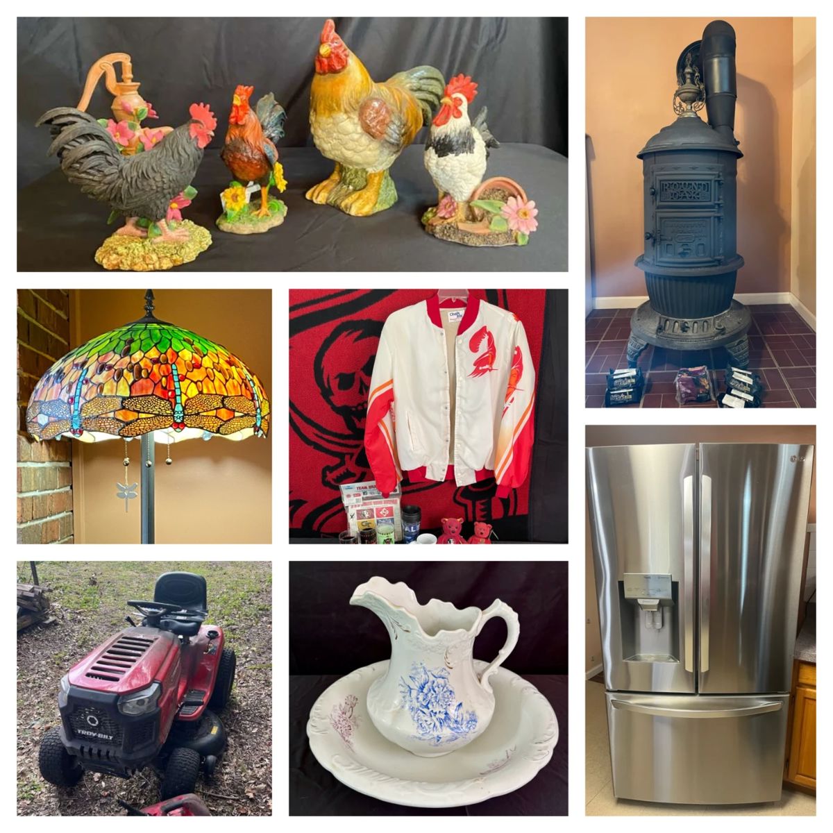 Caring Transitions of Lutz & Land O' Lakes is excited to present this auction out of Land O’ Lakes, FL showcasing a diverse range of items from modern appliances to vintage collectibles! If you're looking to upgrade your home, find unique décor, or even score some rare memorabilia, this is the sale you won't want to miss! In this sale, you will find Maytag Stainless Steel Appliances, Recliners & Other Furniture, a Troy-Built Pony 42T 7-Speed Riding Lawnmower, TV’s, a Vintage Round Oak Cast Iron Wood Burning Parlor Stove, Vintage Tiffany-Style Floor Lamps, Various Kitchen Items, Sports Memorabilia, Unique Rooster...