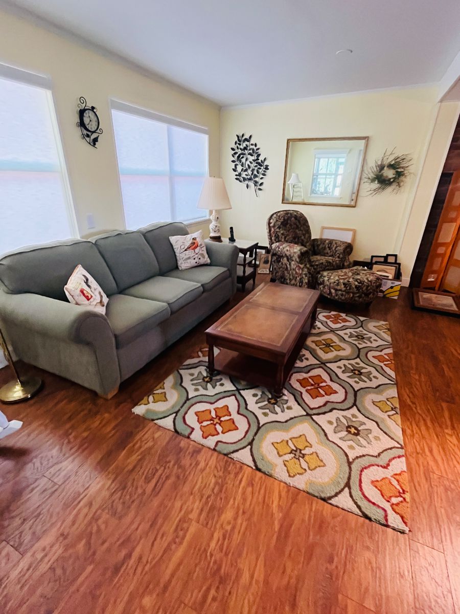 - Porch loaded with Wicker, vintage tables and plant stands.