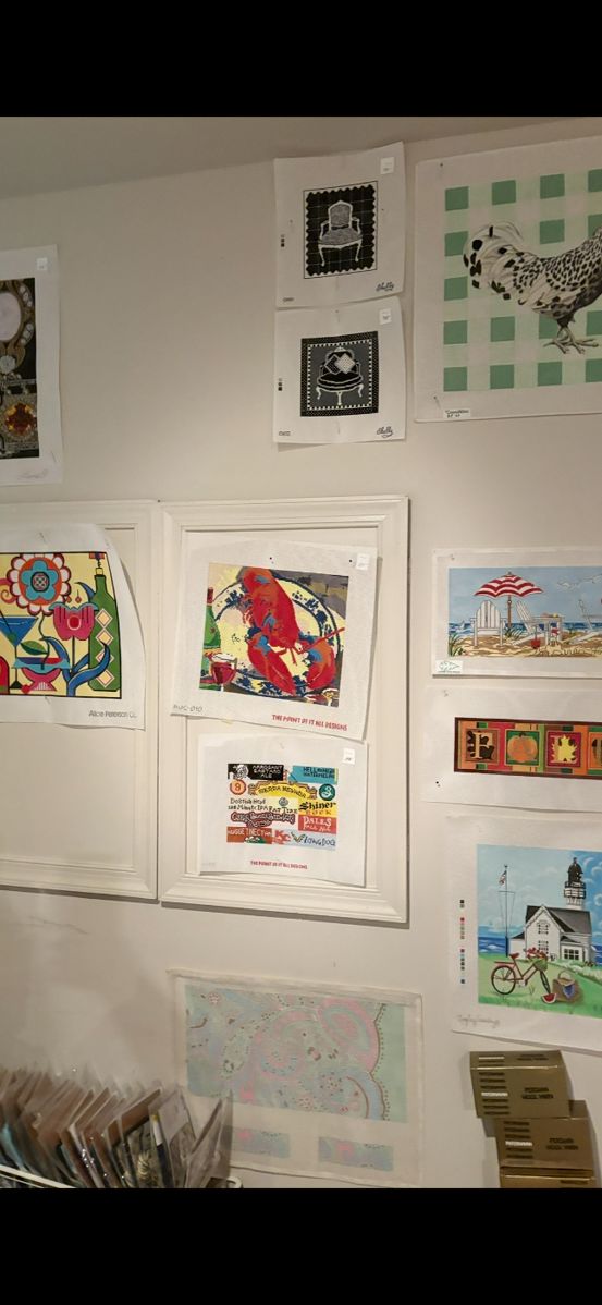 LARGE COLLECTION OF HAND PAINTED NEEDLEPOINT CANVASES FOR SALE.