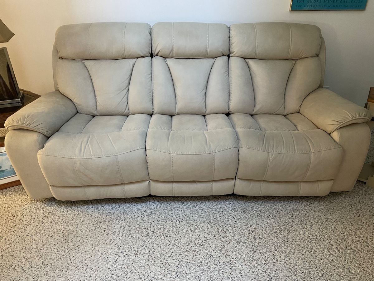 Matching beige, Electric couch/loveseat, blue La-Z-Boy recliner, solid oak, stained glass style lamps, CDs, DVDs, electronics and stereo equipment, green office chair, oak desk with hutch and matching double file cabinet, two white bookcases, green and beige sleep sofa, Books, File cabinet, two white chest of drawers with matching nightstand, queen mattress/boxspring/frame, white, rattan, mirror, fan, stained glass window, pieces, white Solid oak dresser with triple mirror, chest of drawers, two nightstands, king mattress/boxspring/frame, flatscreen TVs, decorative pillows, paintings, mirrors, clothing, area, rugs, bed/bath/table, linens, shoe rack, hamper, vanity, stall, brass and glass, coffee, and end table, white, and beige,...