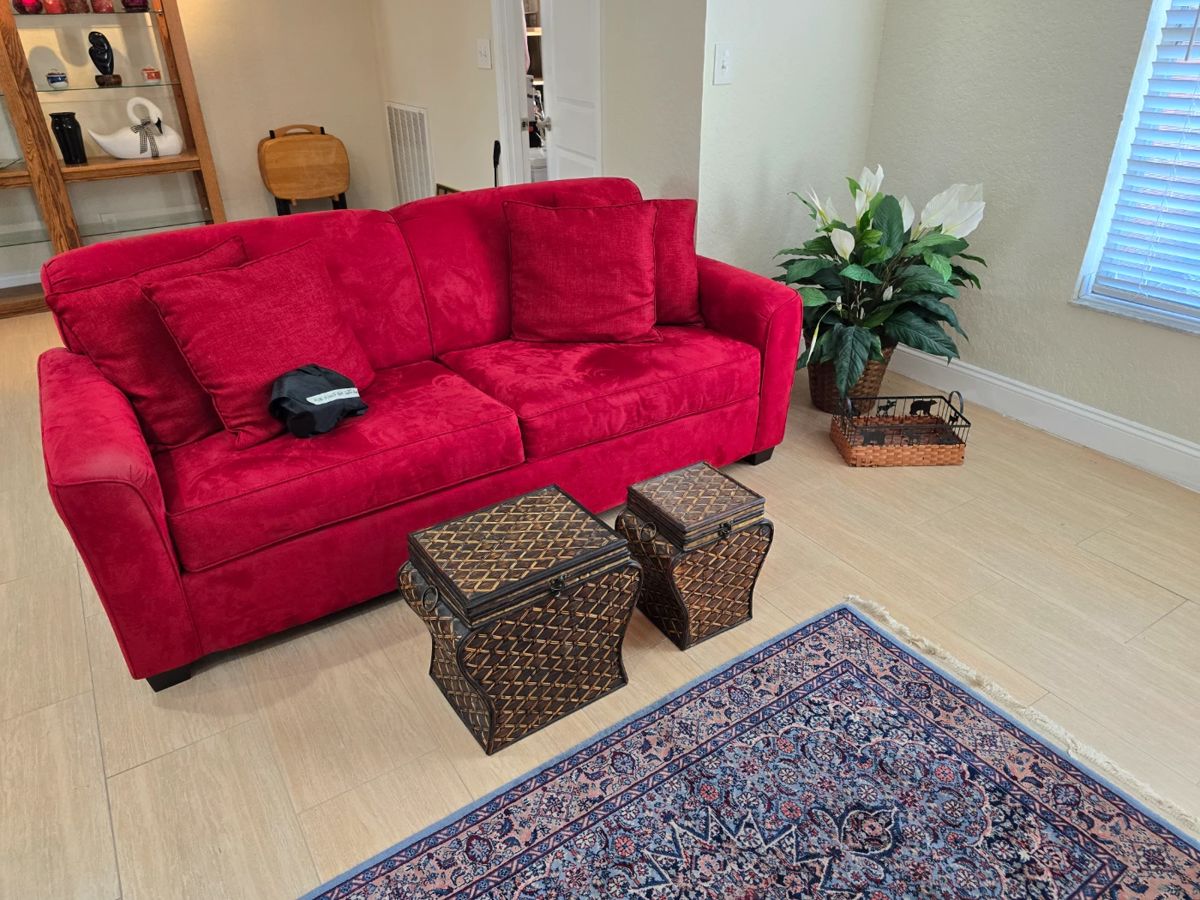 Hi everyone. This week we are back in Highland Lakes. We have a clean sleeper air mattress sofa that is so comfortable, 2 nice side chairs and end table, a nice wall unit/shelving, a nice queen headboard and frame, plus box spring, and 2 nice units on either side of the bed, a king adjustable split twin bed w/king mattress, a small dresser w/mirror, plus another dresser, art supplies, easels, desk, file cabinets, Knick knacks, kitchen items, men’s clothing large/XL, women’s clothing Large. 1XL, men and women's jewelry with a lot of watches, 2 stressless chairs, a nice metal bench,...