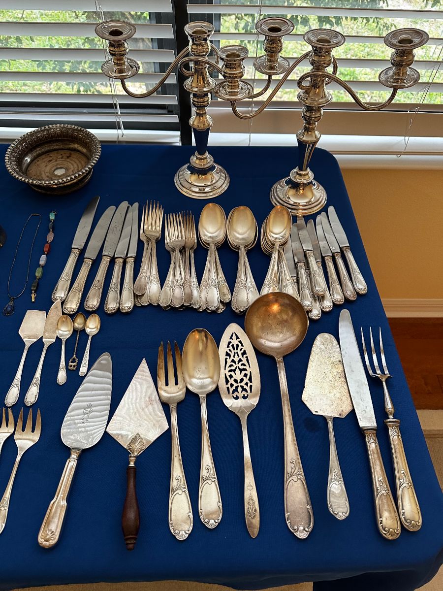 Email Julie1944@aol.com for appointment. I will reply by email on Thurs or Friday. Sat Morning I will be at my other sale so do not wait until Sat to email me. NO PHONE CALLS!! They are strict about not allowing estate sales here so please be a serious buyer. Discover a treasure trove of unique and beautiful items! Highlights include French silver flatware, a dining table with chairs, area rugs, wingback chairs, chests, and a stunning sideboard. You’ll also find a tiered mahogany pie crust accent table, Russian lacquer boxes, Bwanna Africa handwoven baskets, and vintage furniture like a dresser...