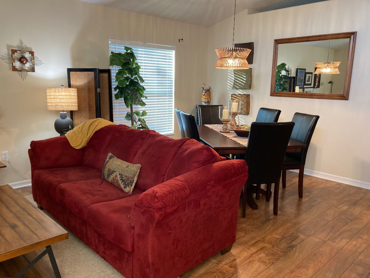 Everything in this home is PRISTINE and DECORATOR PERFECT… and nearly NEW. Seriously you don’t want to miss this sale. This is a true estate sale. Beautiful sideboards Beautiful sofas anyone would be proud to have in their home Dining table and chairs Fabulous earthy pottery Very nice lamps Nice coffee tables. Decorator rugs. Unusual stylish chairs. Gorgeous main bedroom. White wrought bed in guest room with white side table. Exquisite linens: table cloths, towels, more. VERY FULL kitchen with high-end pottery dish set, high-end cookware and appliances. BEAUTIFUL glassware. Waterford Millennium Collection stemware (pair of champagnes). Very nice ladies...