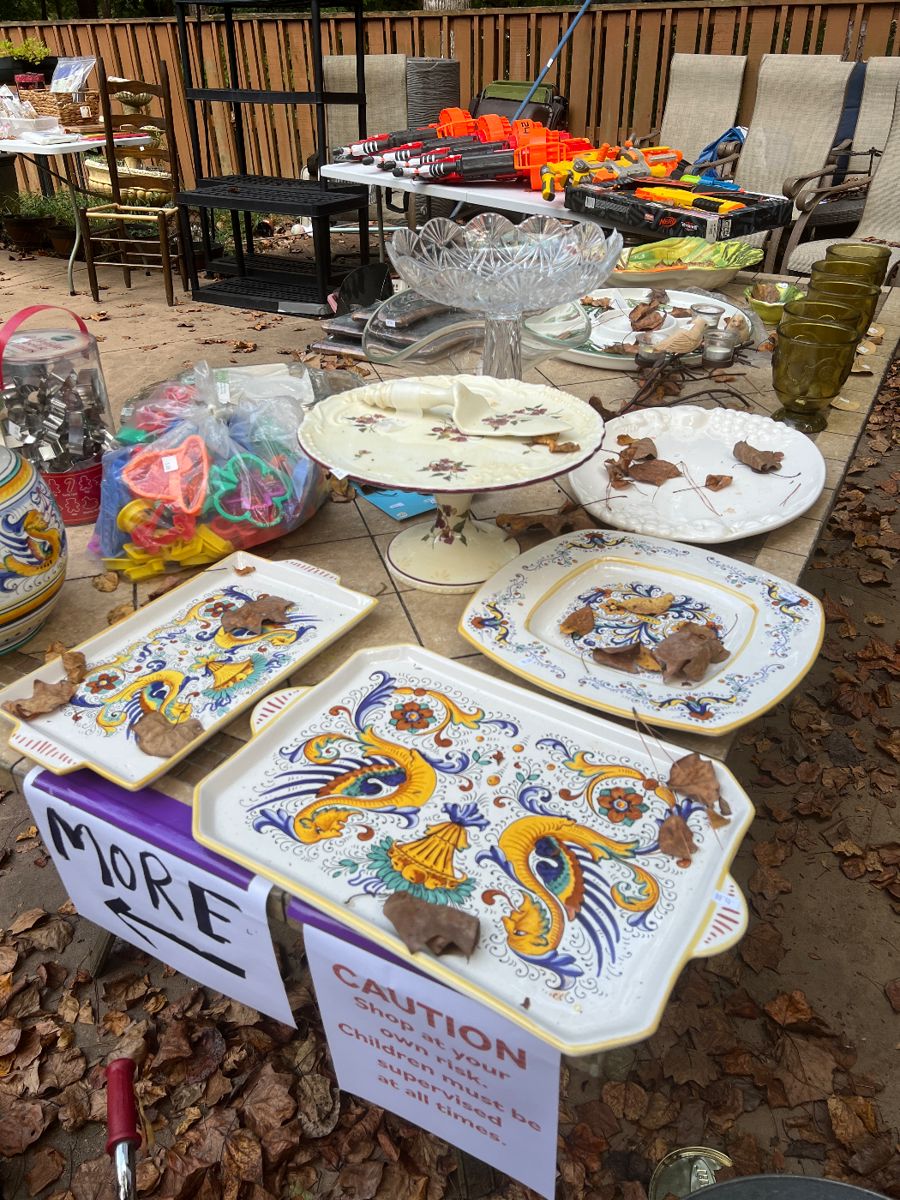Saturday Half Priced Day! Liquidating my sister’s estate, eBay and Etsy stores. High end designer clothing many still with store tags. Suits, Jackets, Coats, Shoes, Antiques, China, New serving dishes, crafts, small furniture, toys and so much more. We’ve brought out more items and lowered last week’s prices on items. Most clothing is $1, most clothes with store tags $2, Suits $5, Jackets $3, shoes/boots $3-5 select clothes $5, Everything is priced to go. The more you buy the better deal you get! With prices this low, we’ll not come down anymore!