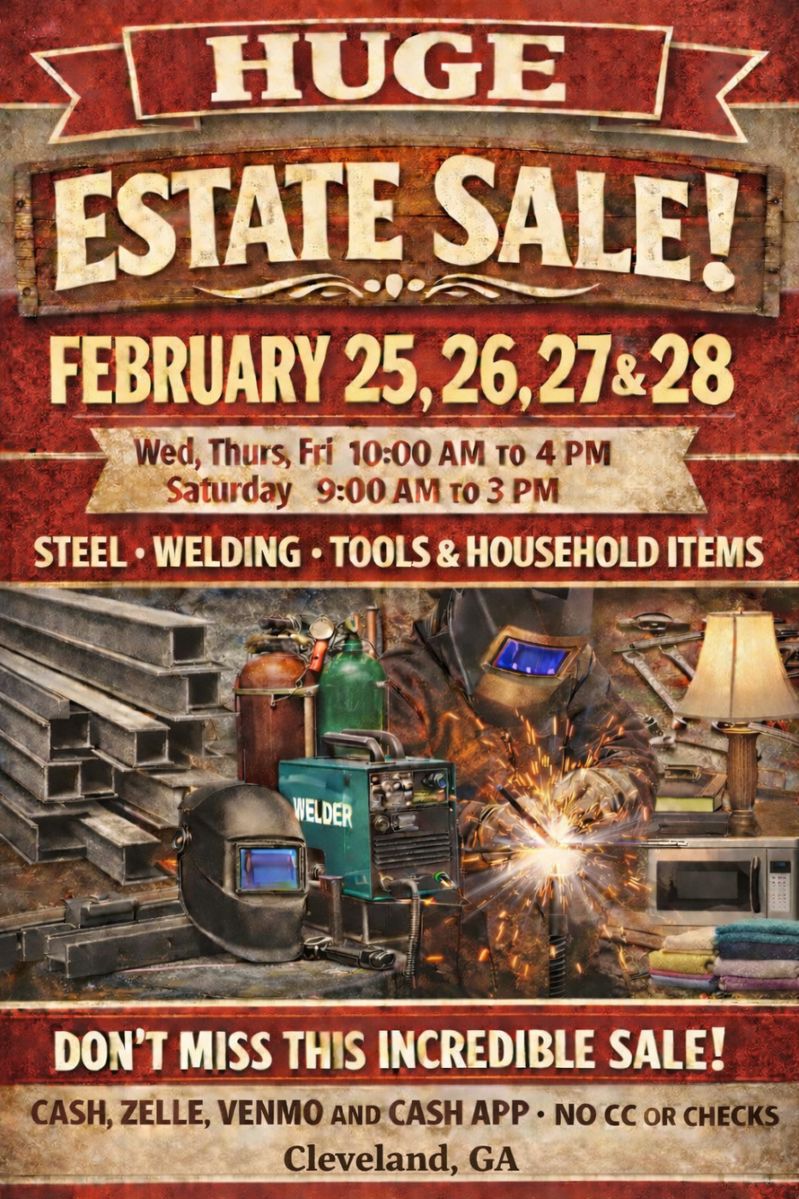 The address for this sale in Cleveland, GA 30528 will be available after 9:00am on Tuesday, February 24th, 2026.