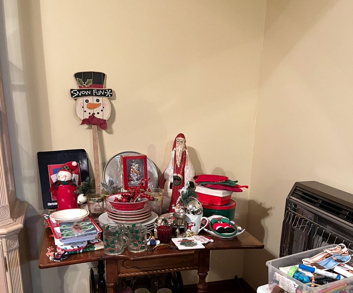 tools, garden items, file cabinets, shelves, Christmas decoratiins, folding chairs, desk.... and many more