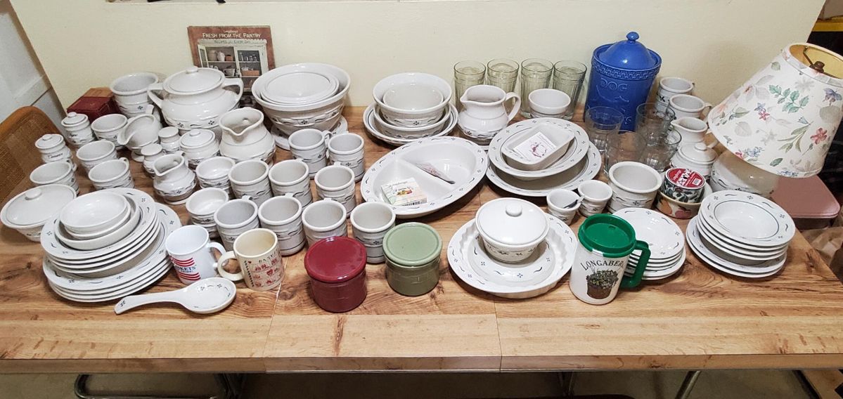 longaberger dishes, Indian ornaments, pewter figurines, pedal tractor, clothes, furniture, twin bed, Terri redlin paintings, lots of nice things here.
