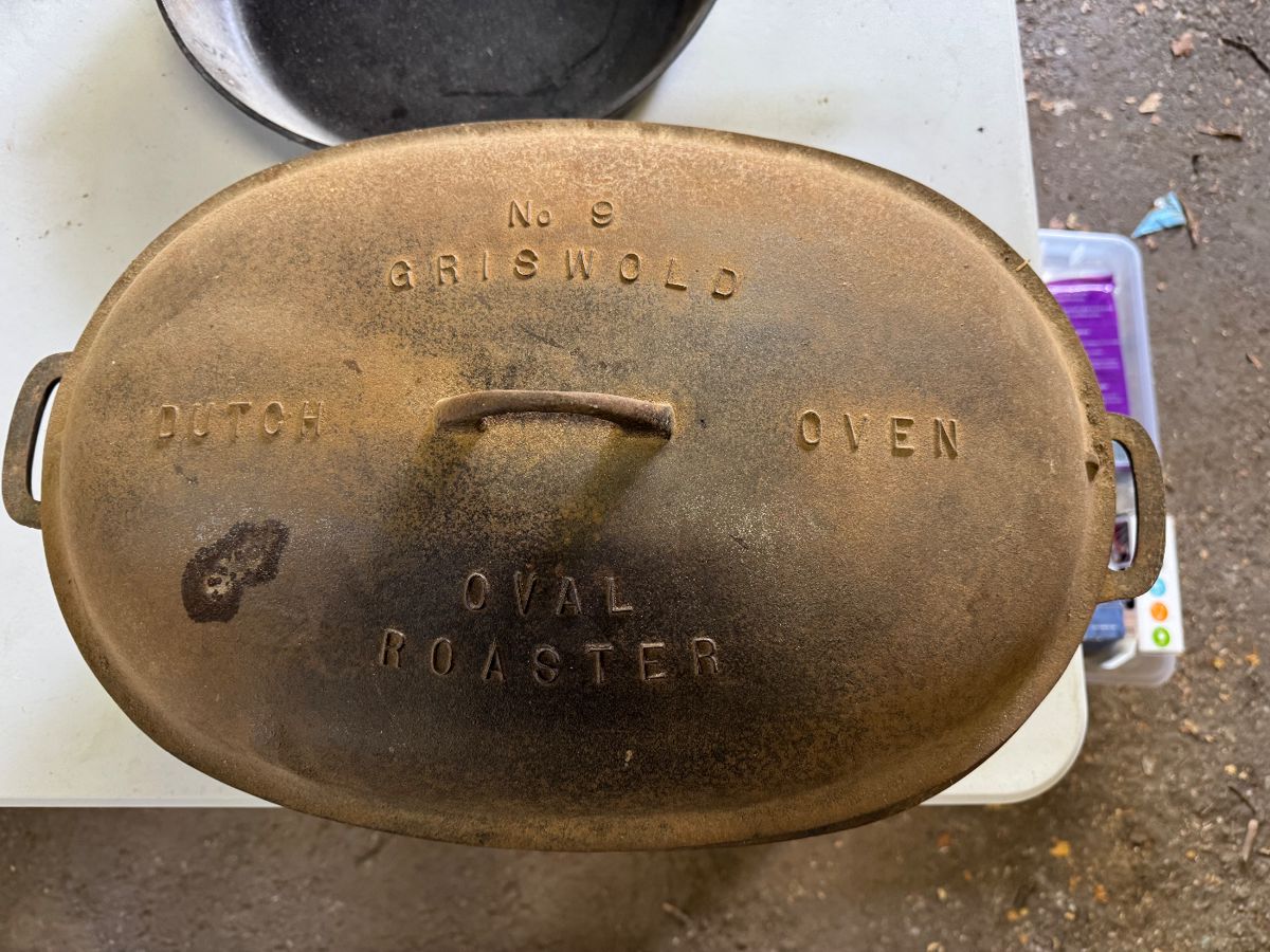 There are some great items at this barn sale, here is a list of some of the items we have. Make sure you look at the pictures to get a better idea of what we have. Griswold no.9 dutch oven oval roaster Cast iron skillet Cast iron antique fireplace grate Patio furniture with covers 30’ x 60’ tent Wood trailer Grain separator A pair of farmhouse doors Lots of outdoor décor like whirligigs, and concrete statues etc. Flower pots Flagstone Pavers Large stones Old paver bricks Antique farm tools Meat hooks Cole Tool vise attached to old wagon wheel Large...