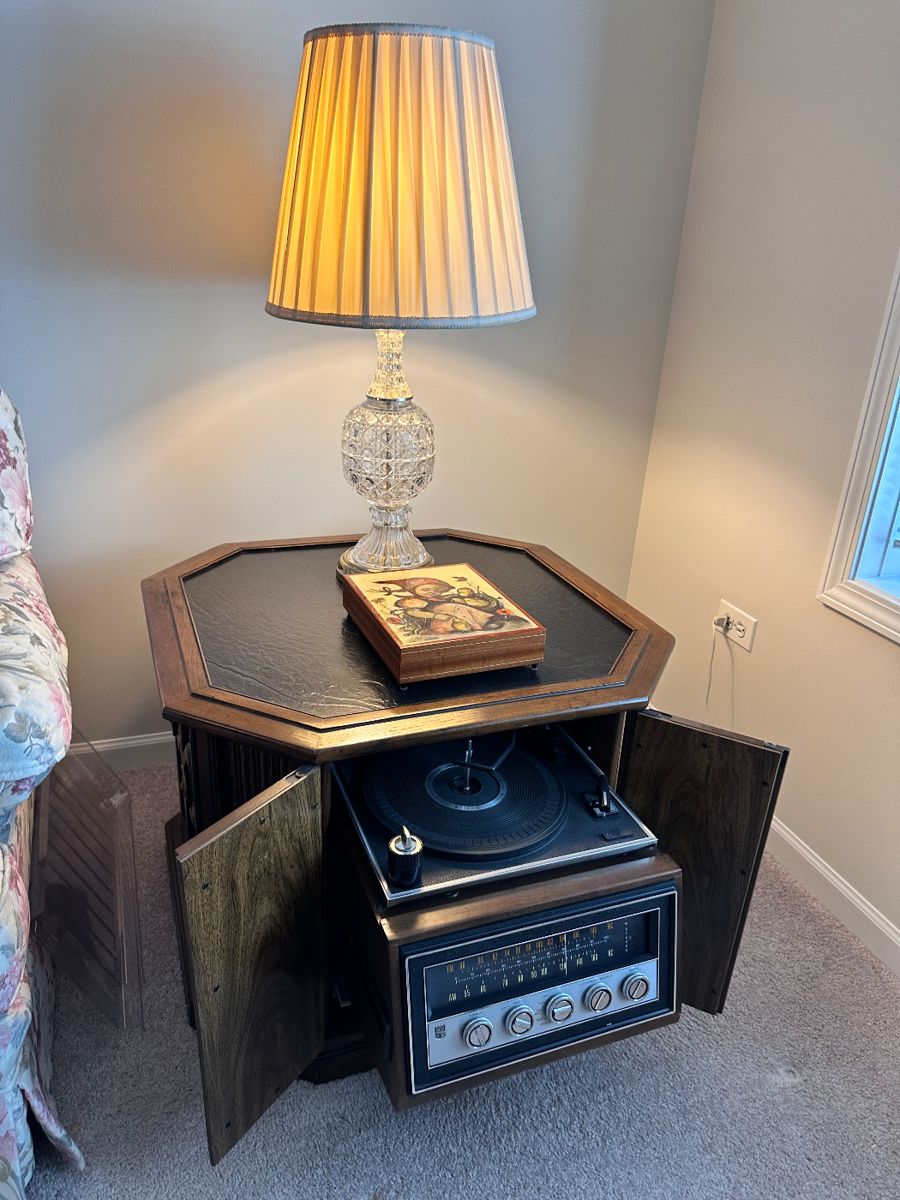 Saturday & Sunday May 24th & 25th 9am to 3pm 50% Off All Remaining Items!!! Please join us for a sale where almost all items are in mint condition! Vintage Magnavox end table record and stereo player - very cool! Dining room table with three leaves, pads and six chairs, China cabinet, daybed, couch, coffee table, ornate king-size headboard, twin mattress and boxspring, safe, brass chandelier, lamps, Amana refrigerator/freezer, silver, China, linens, books, kitchenware. Patio and garden accessories, Christmas, costume jewelry, vintage Snoopy apparel and more! We hope you can join us! 50% Off All Remaining Items!!!