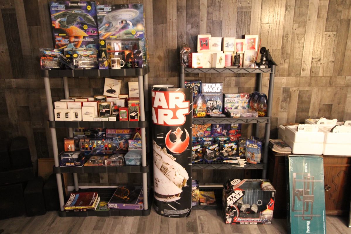 Packed sale on the south side of Wichita. Star Wars & Star Trek collectables, figurines, models, and memorabilia. Tempurpedic adjustable king size bed, 5 drawer chests, TCL Roku LED TV's, wooden tables, side tables, men's clothing, drop leaf table, Sony bluray player, NEC projector, artificial plants, DVD & Blu-ray's, Dr Who collectables, Pop's figurines, fireplace tool set & wood holder, Shark AI robot floor cleaner, Galaxy electric reclining sofa & chair, Vornado fan, Lasko fan, Onnt TV mount, Klipsch 5.1 home theater surround sound speaker system, table w/ 4 chairs, book shelves, microwave, Calphalon countertop oven, Smug mixer, Smeg toaster,...