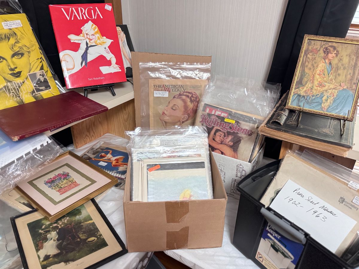 October 16-18. Thurs & Fri-8:30-6. Sat-8:30-2. Antique pottery - 35 pcs Van Briggle +lamp w/shade, 28 pcs Weller, 18 pcs Roseville, Metlox, Cowan, McCoy, Rookwood, Watts, Antique China/Porcelain - RS Prussia 30 pcs, Zsolnay, Lenox, Cordey, Pickard, Royal Bavarian, Royal Dux, German Schafer & Vater, Pictures/Prints - Fox, Parrish, Berneker, Vargas, mezzotints, 100s of vintage prints & pictures, Picture frames -Over 100 Antique frames and all sizes, Antique art history books, books with antique prints, Collectibles - Zsolnay, Coke/Pepsi, Sleepy Eye, Rosemeade, Wade figurines, Vintage Sunbeam mixer, butter churns, crocks, Mason jars, complete Kellogg crank phone, perfume bottles, Avon, John...